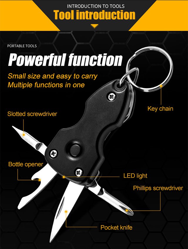 - Multi-function use: Multifunction Tactical Keychain, design including LED flashlight, Phillips screwdriver, mini folding knife, bottle opener, flat screwdriver, key ring for men to meet different needs.