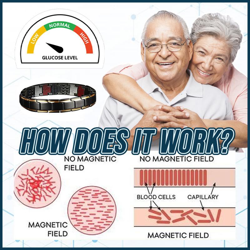 This MAGNETIC BRACELET can EFECTIVELY ENERGIZE the BODY and BOOST CIRCULATION to STIMULATE the NUTRIENT-RICH BLOOD FLOW and REVIVE your METABOLISM for a SUPER SAFE and NON-INAVASIVE Sugar Monitoring.