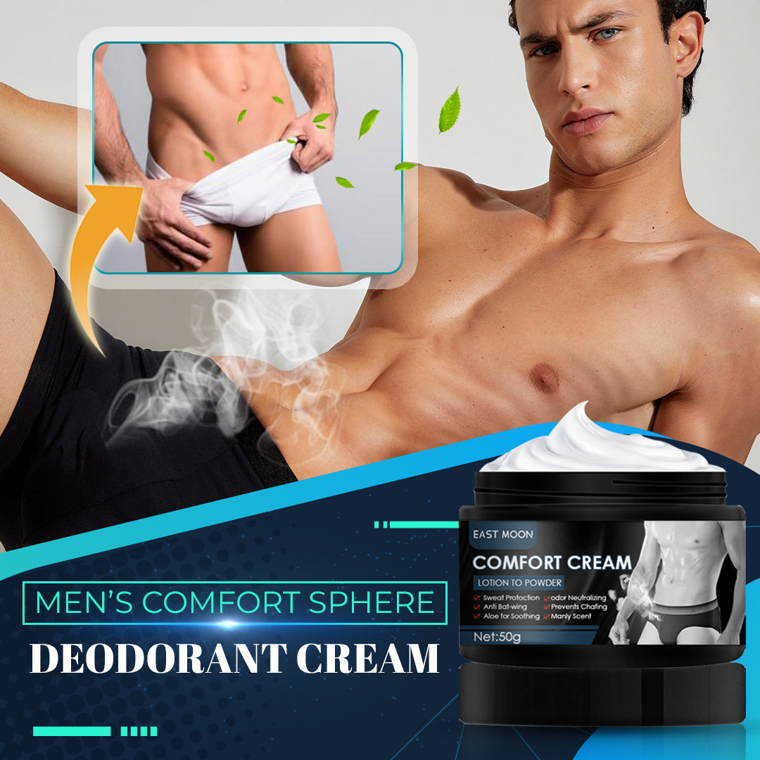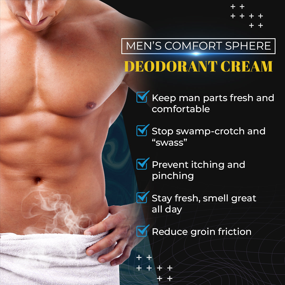 - Anti-Chafing- No need to worry about dry and chafed thighs with the Men's Comfort Sphere Deodorant Cream!