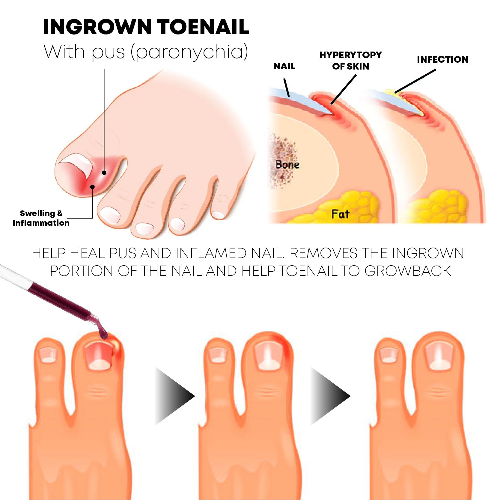 ToenailPlus™ Anti Paronychia Relief Oil help relieve pain and make removal of ingrown and bacteria on nails easy, making your toes more comfortable from pain. It is proven to be the best paronychia toenail treatment solution!