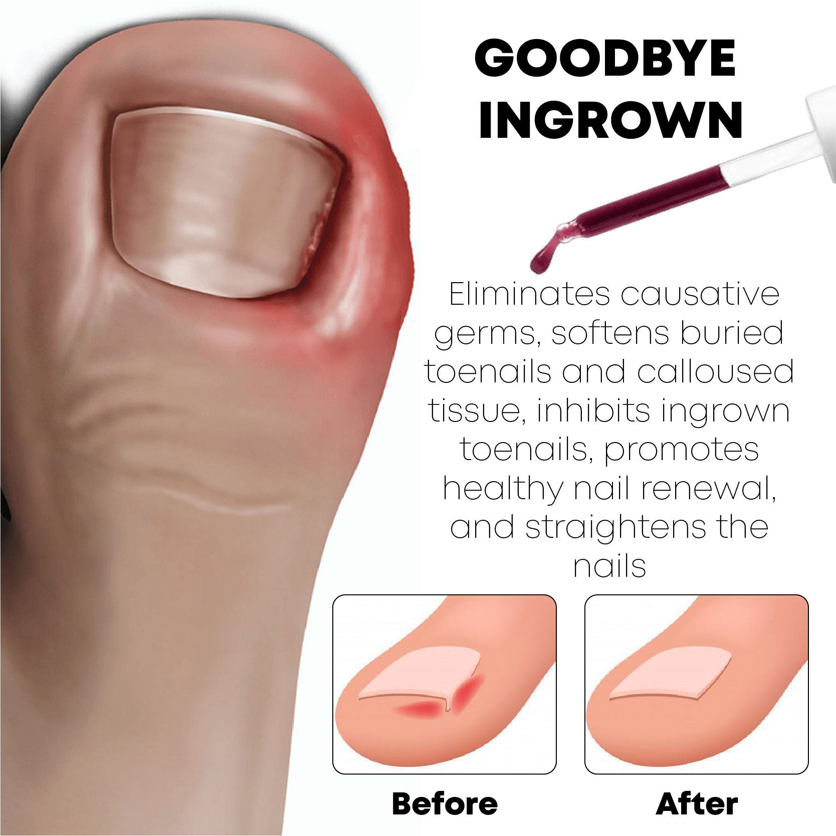 "This product truly works!!! I've been battling toe nail ingrown for years now. After using it, the ingrown on my large toes had disappeared. I am dedicated to using it twice daily, and I work hard to thoroughly clean and sanitize all grooming equipment. But nothing has ever been this OBVIOUSLY successful before! By the summer of next year, I should be back in my open-toed footwear!"- Erich Bellinger