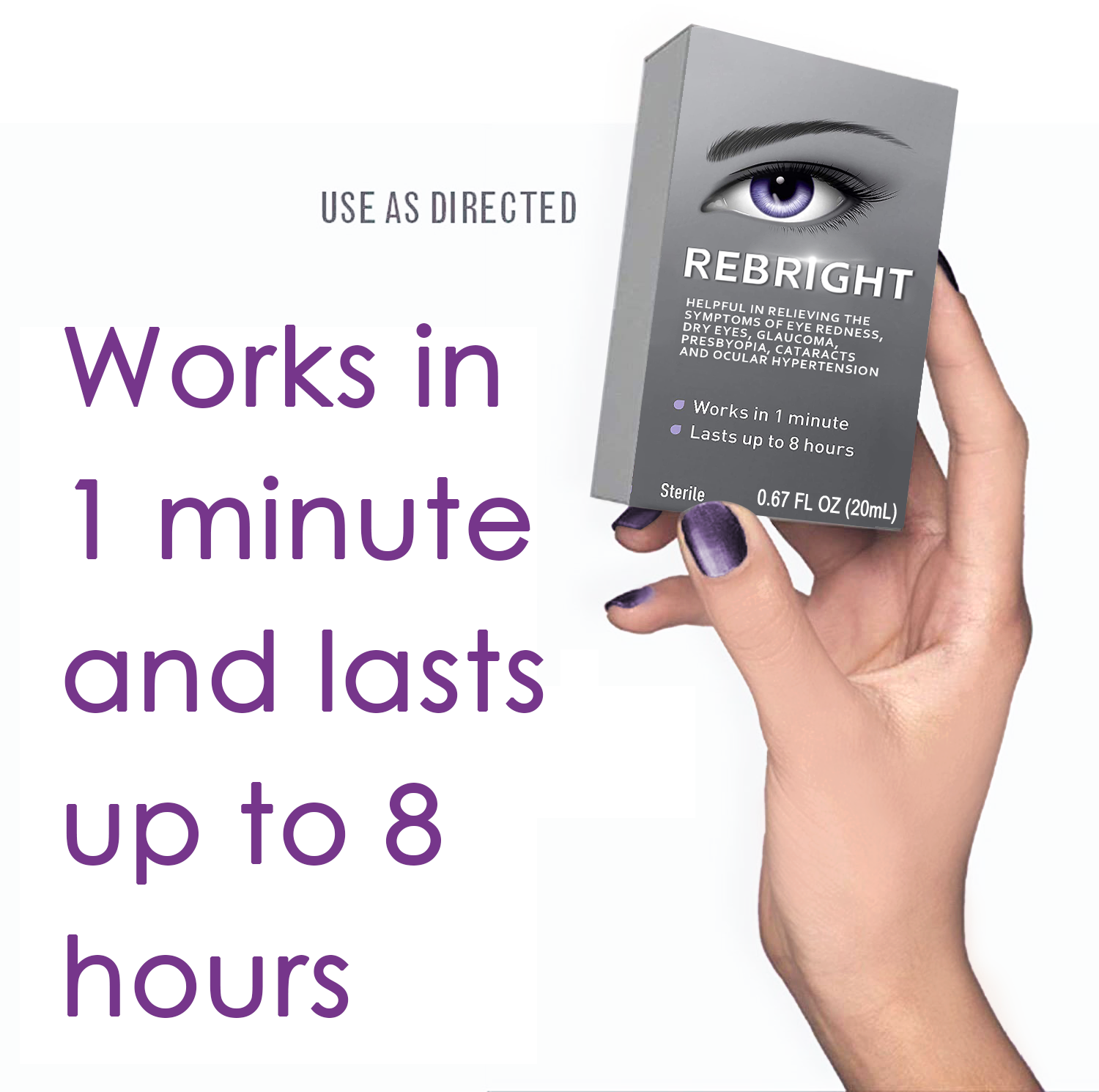 REBRIGHT™ Eye Drops for the symptoms of eye redness, dry eyes, glaucoma, presbyopia, cataracts and ocular hypertension
