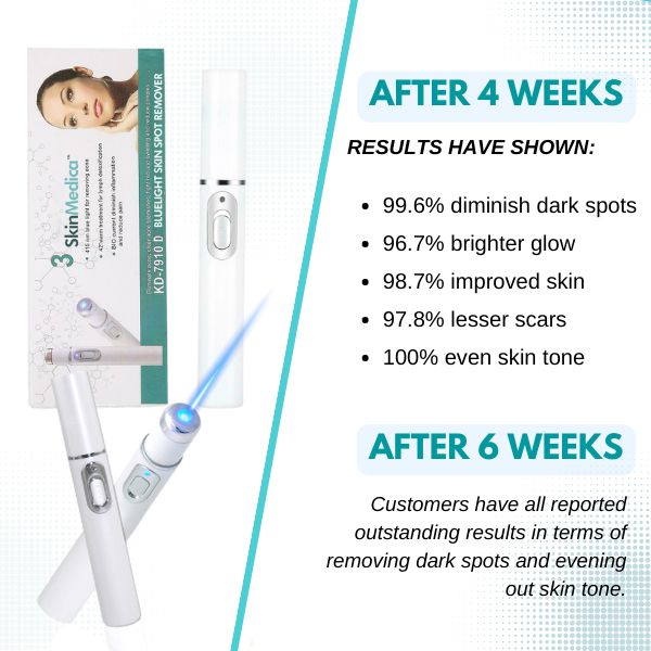 MEDICO™ Blue Light Skin Spot Remover is a 100% painless, effective and non-invasive skincare technology used by dermatologists to treat the grease of pimples and scars. You can remove spot without burning the skin.
